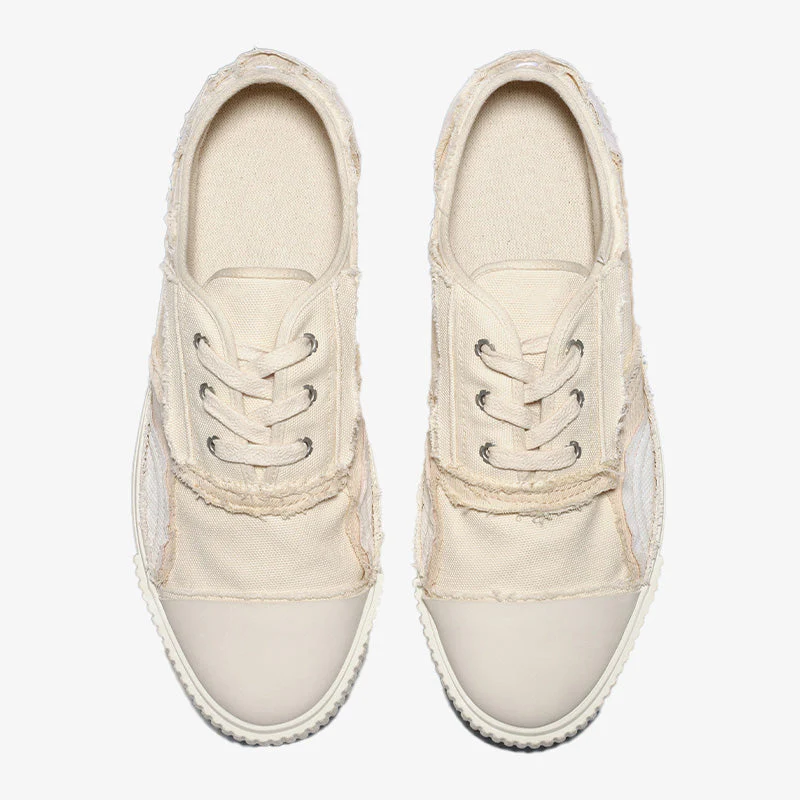 Off White Cotton Canvas Lace-Up Sneakers